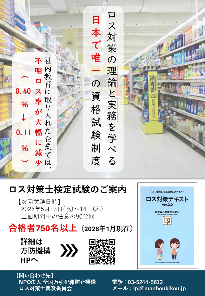 ●ロス対策士検定試験合格者(2025年1月実施) 合格率54.8% →第12回 … 続きを読む